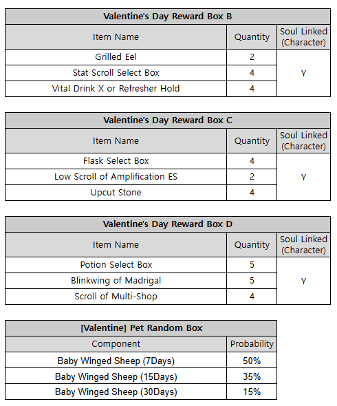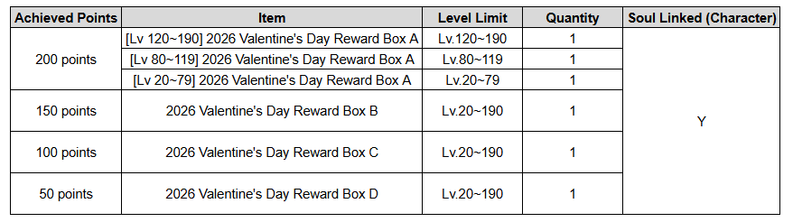 Please make sure to click the “Claim” button in the Valentine’s Day event sub-menu to receive your rewards. Rewards obtained through this event will be deleted when the event ends.