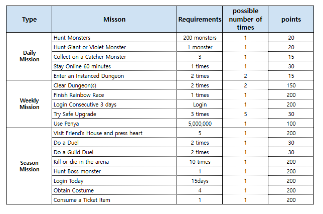Missions are divided into daily, weekly, and season.
