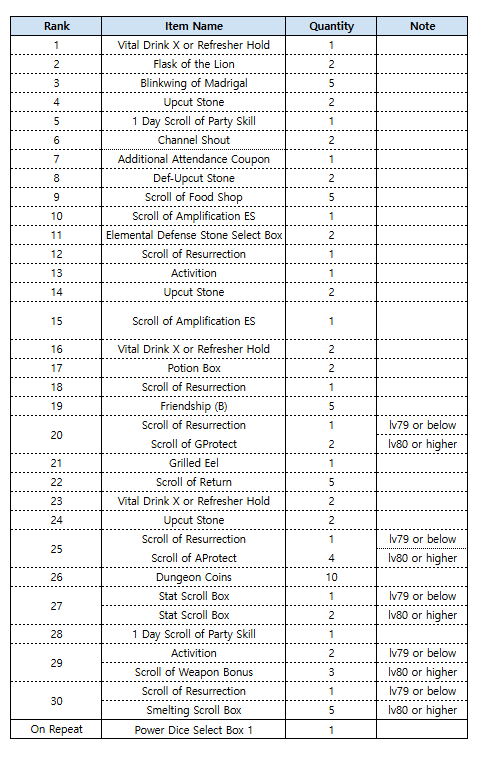 Here are the details of the repeated rewards:
