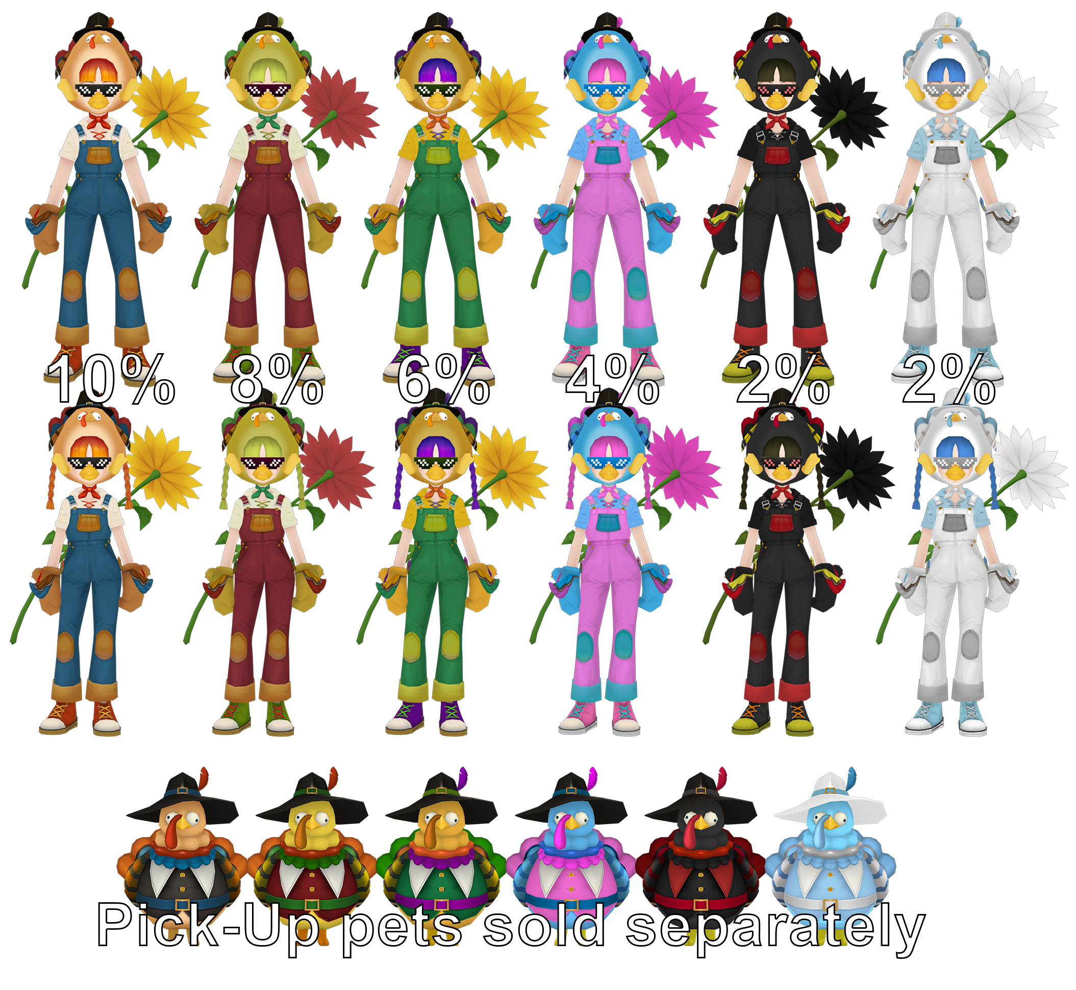 Hat / Suit / Shoes / Hands / Flower (cloak) / Glasses (mask)