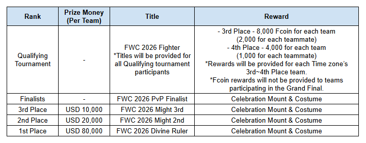 - During the final month of the FWC Server, the FWC 2026 PvP Tournament will be held.Â