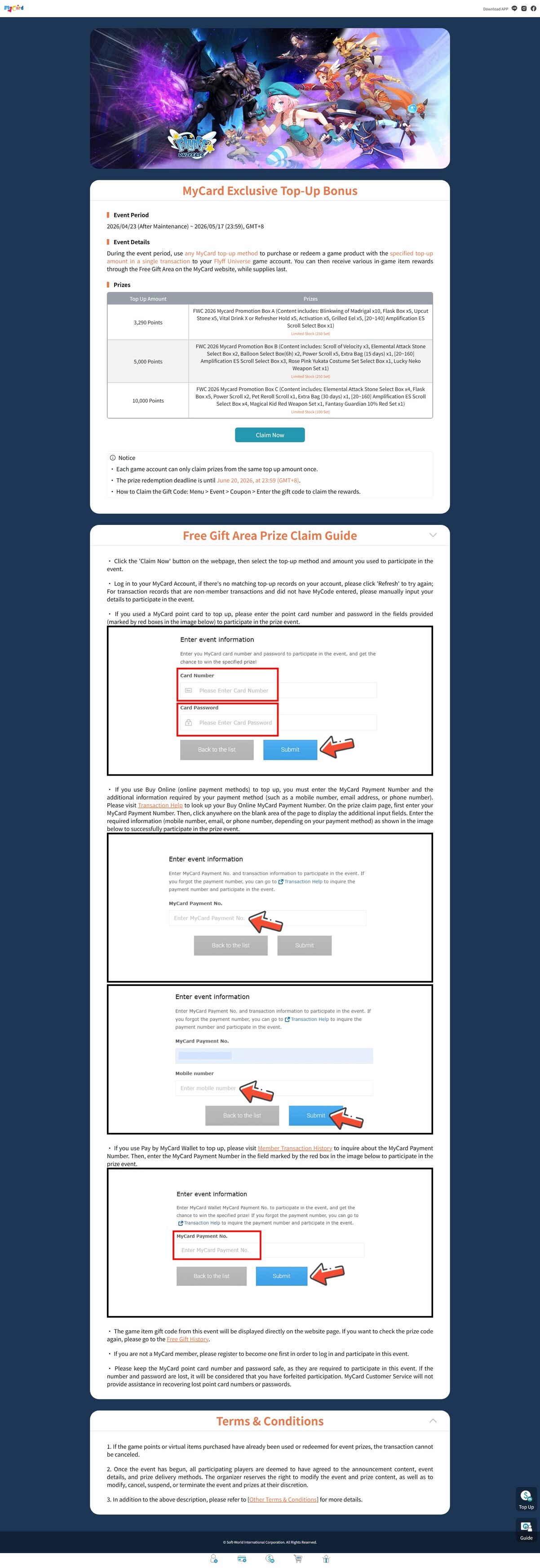 Event Detail: Top up the specified MyCard amount and claim in-game item rewards. (Limited Stock)