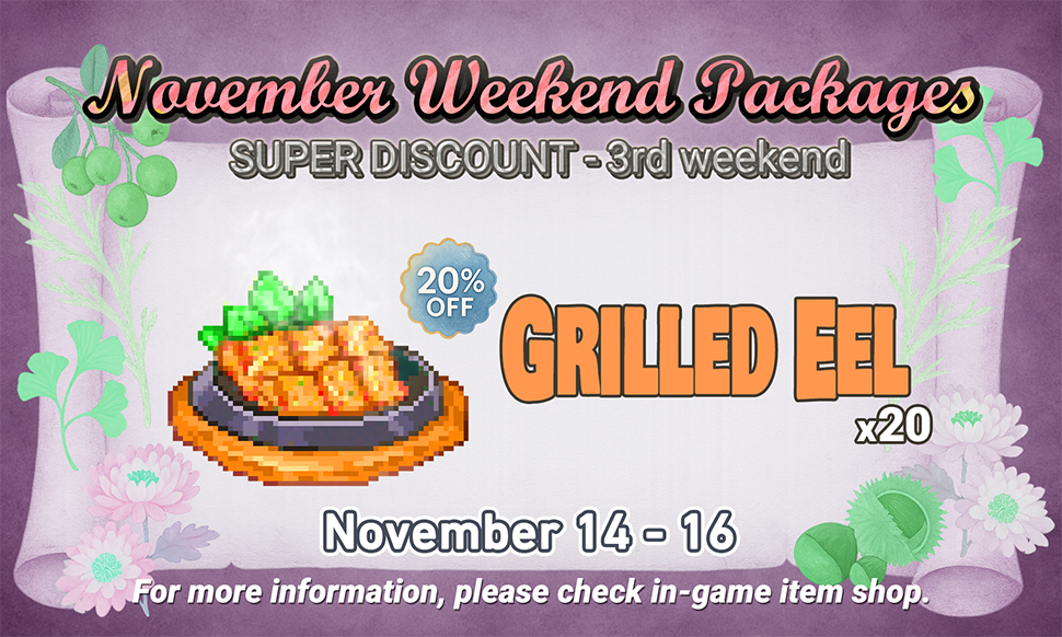 A bundle of Grilled Eel (x20) will be available to purchase as a discounted price for a limited time.