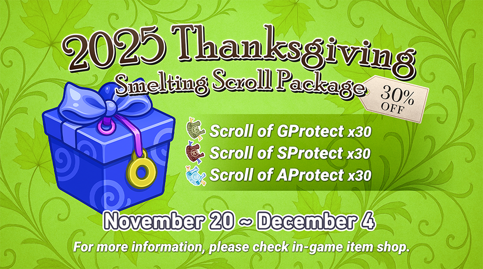The special package, "2025 Thanksgiving Smelting Scroll Package", will provide multiple discounts for valuable items for a limited time.