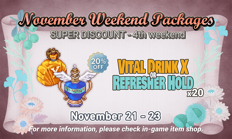 A bundle of Vital Drink X or Refresher Hold(x20) will be available to purchase as a discounted price for a limited time.
