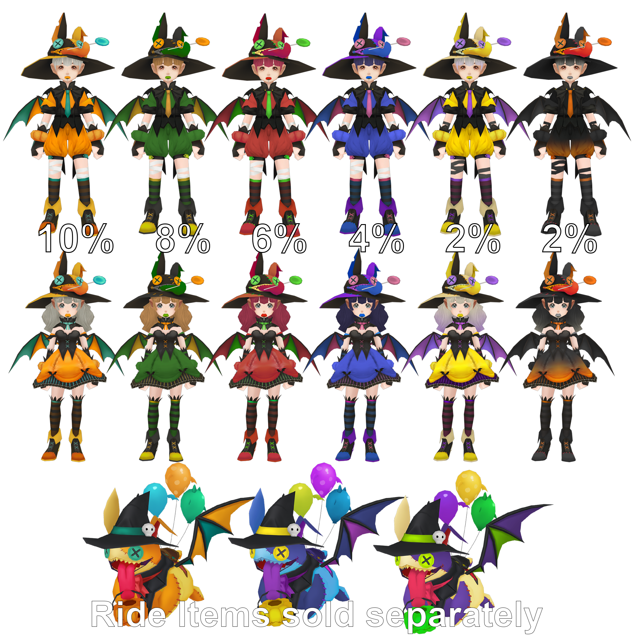 Hat / Suit / Shoes / Hands / Wings (cloak) / Lollipop (mask)