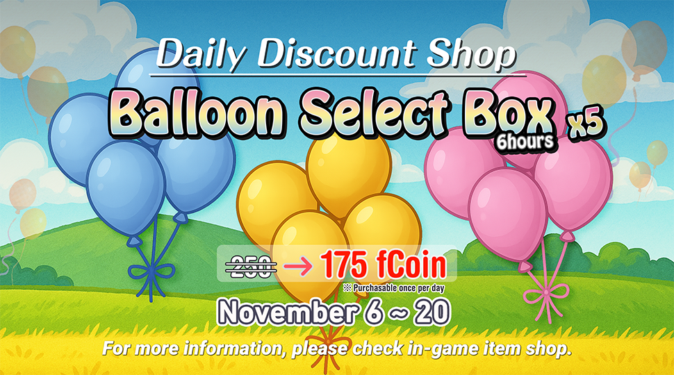 Balloon Select Box(6h) will be added to the item shop.