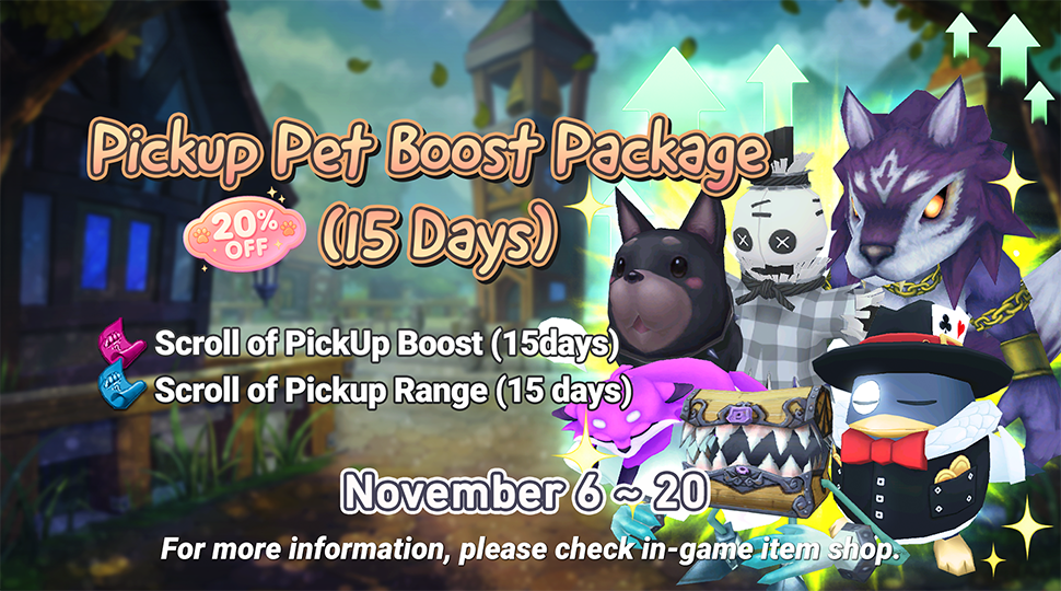 Pickup Pet Boost Package (15 days) will be available to purchase as a discounted price for a limited time.
