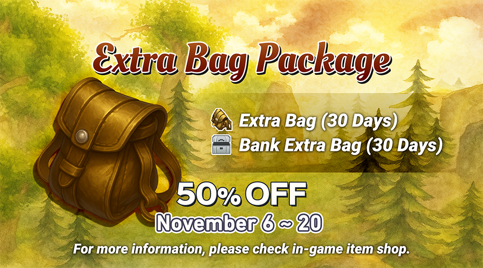 Extra Bag Package will be added to the item shop.