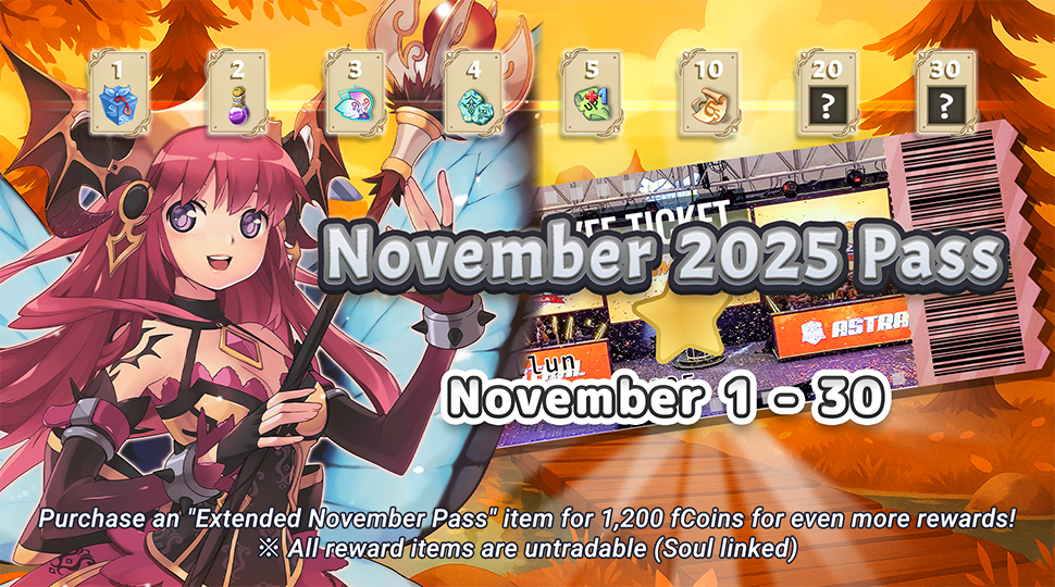 You can also purchase a special "Extended November Pass" item for 1,200 fCoins.