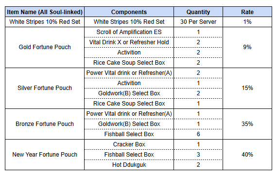 Please note that for the White Stripes 10% Red Set reward, only 30 items per server will be available on a first-come, first-served basis. After that, only the White Stripes Red Set will be distributed.